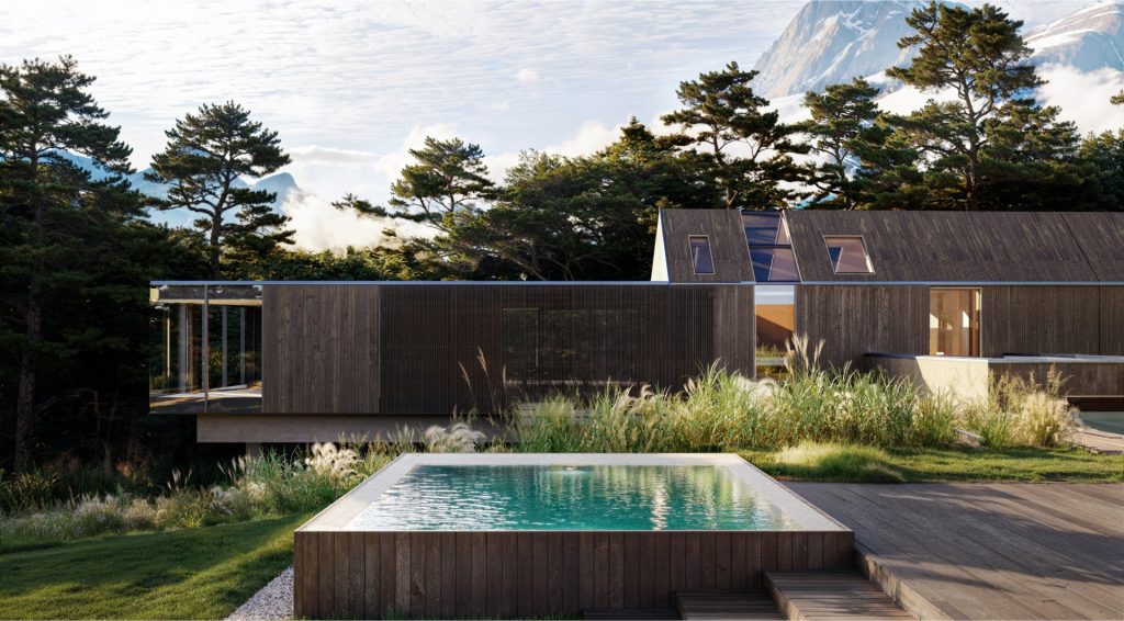 Acabados en tonos tierra, presencia de piedra natural, madera o gravilla en el entorno. Transmiten calma y se integran muy bien con viviendas tradicionales o rurales.