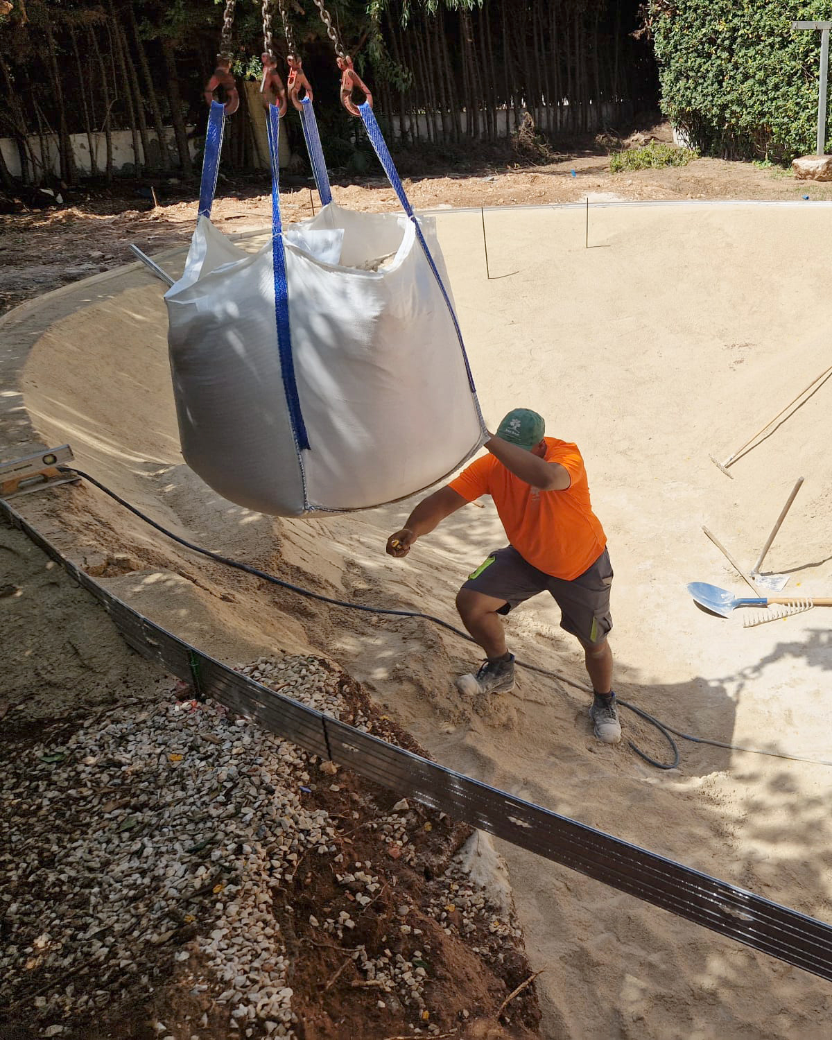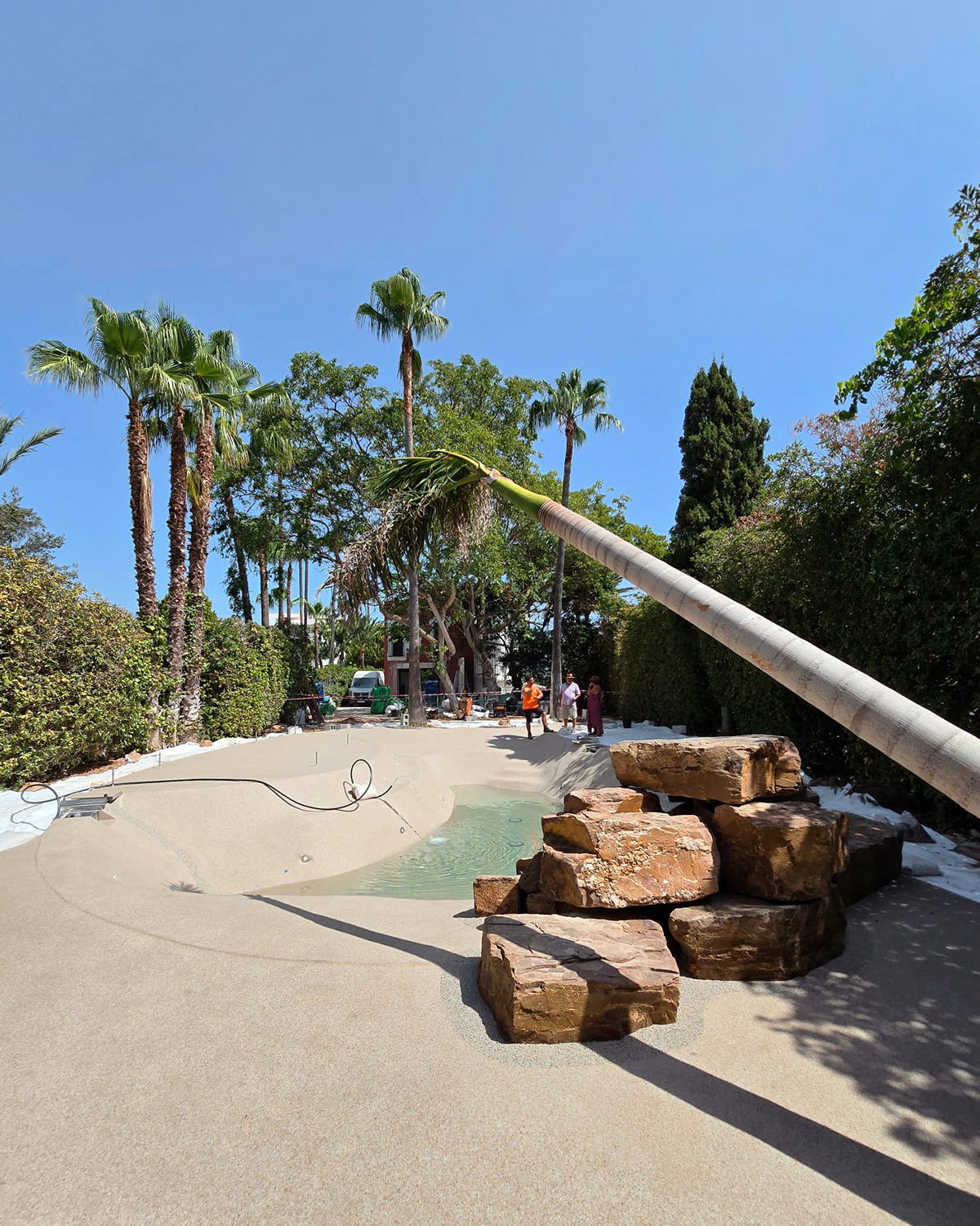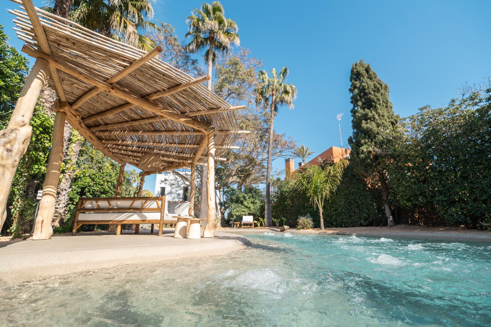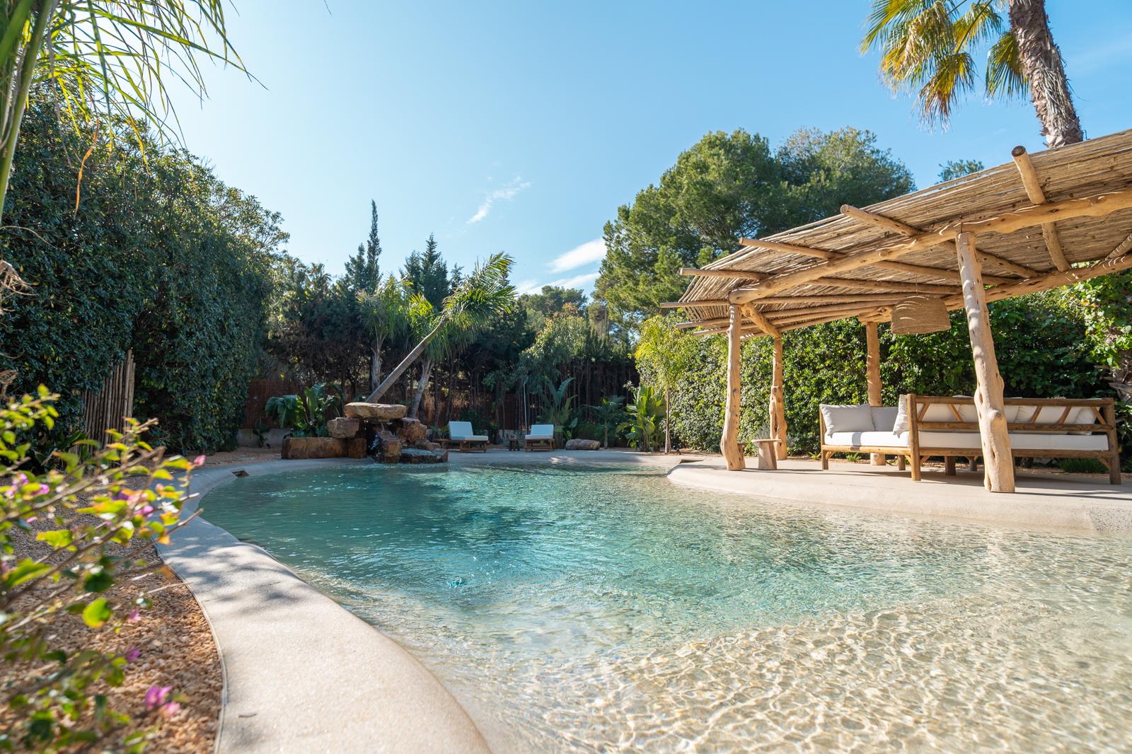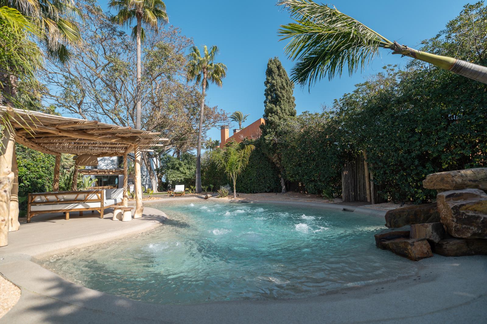 En este proyecto sustituimos una antigua piscina de obra por una piscina de arena de formas orgánicas, que se integra de forma natural en el jardín y transforma por completo el espacio exterior. En nuestro blog puedes ver el antes y después del espacio.